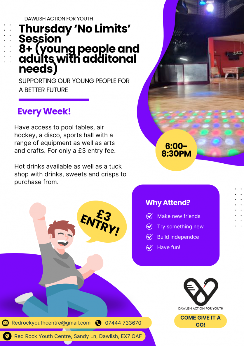 Dawlish Action for Youth is a registered charity that provides leisure and recreational facilities in an informal setting for young people living, staying or working within Dawlish and its surrounding areas.