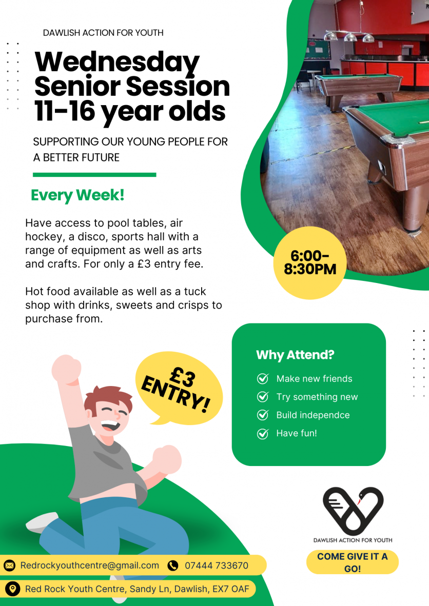 Dawlish Action for Youth is a registered charity that provides leisure and recreational facilities in an informal setting for young people living, staying or working within Dawlish and its surrounding areas.